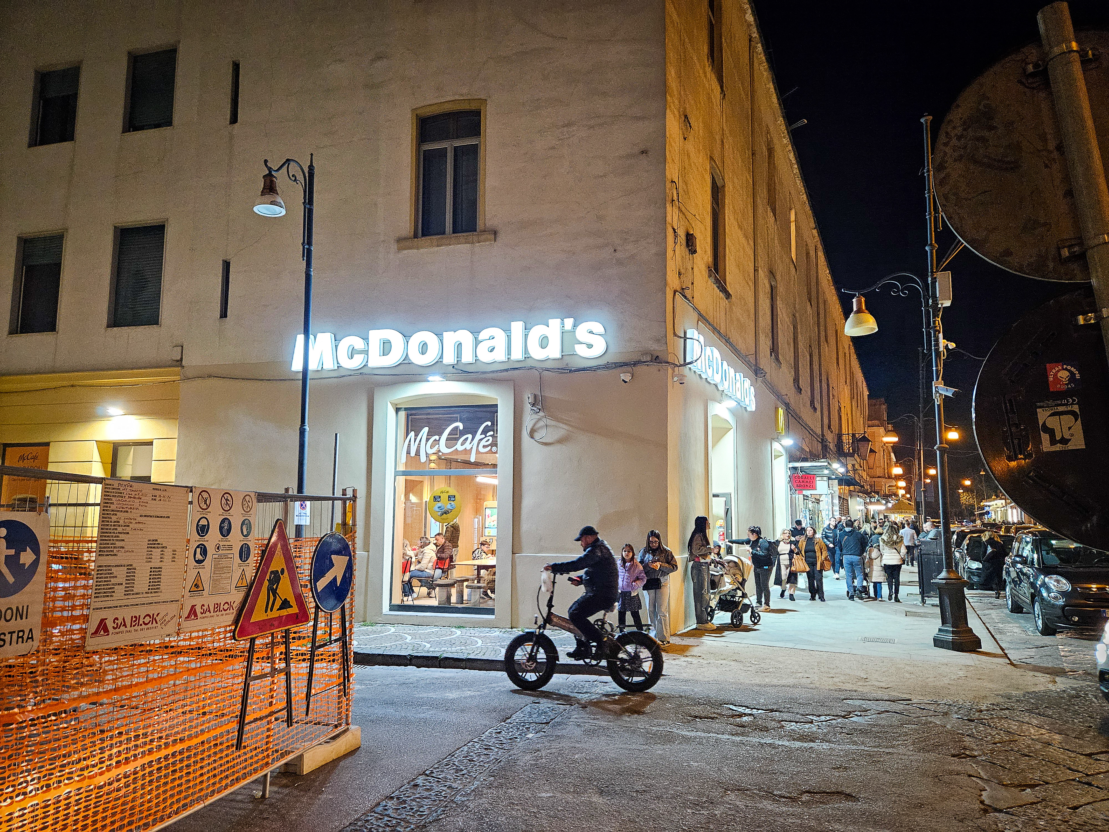 Later we decided to go for a stroll. The place was buzzing with people. Lorraine spotted a McDonalds which we must have walked past this morning. We had a meal between us. Lorraine enjoying the frys, John the burger.