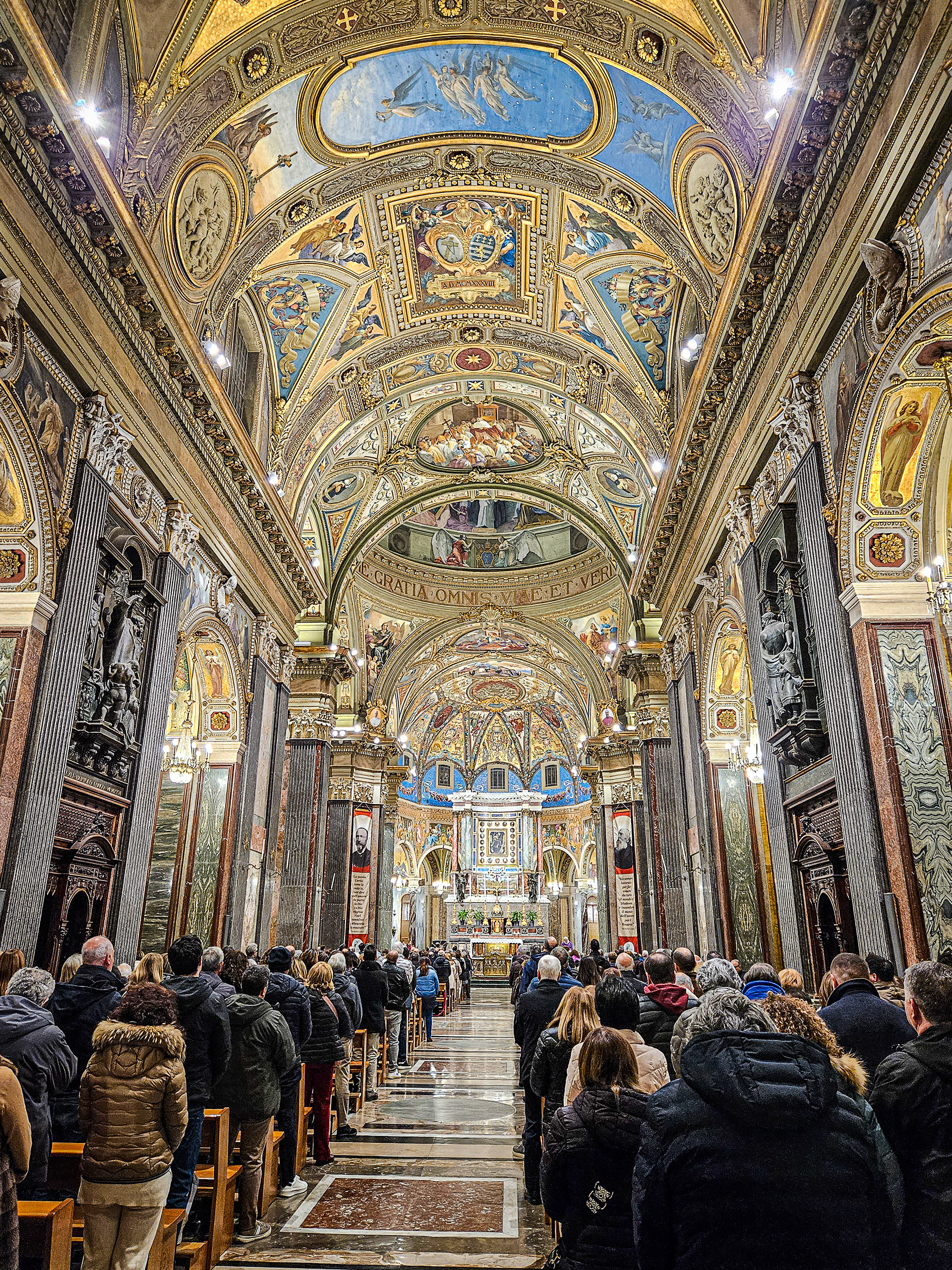 The main square had an impressive bell tower , which we heard that morning at 7:00 hrs. And the church was spectacular inside. There was a service in full flight, and seemed to be very well attended.